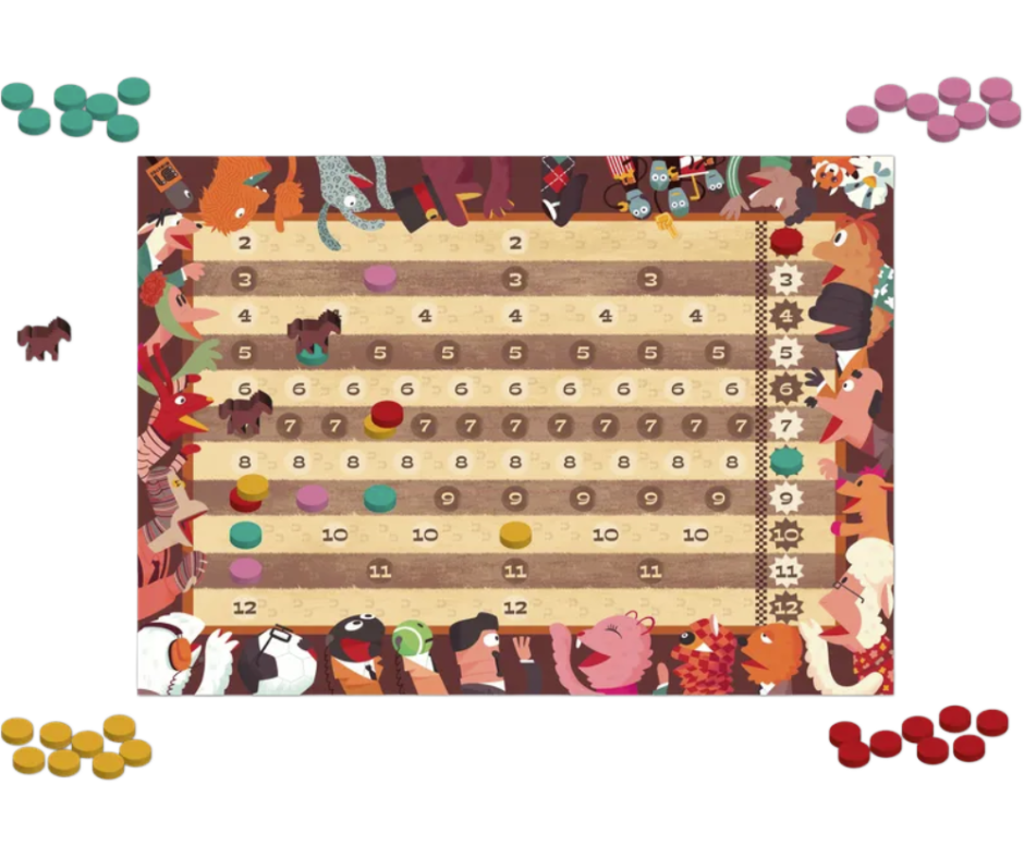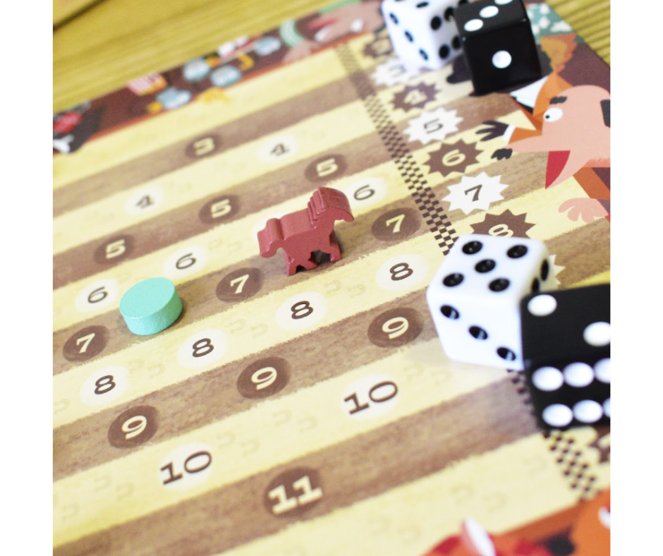 En este dinámico juego, cada jugador lanza cuatro dados para formar combinaciones que determinan las pistas en las que avanzarán sus caballos. La meta es clara: ser el primero en ganar tres de las once carreras numeradas. Pero atención, ¡cada jugada cuenta! Podrás lanzar los dados todas las veces que logres mover al menos un caballo; sin embargo, si te quedas sin movimientos, retrocedes todo lo avanzado en ese turno.