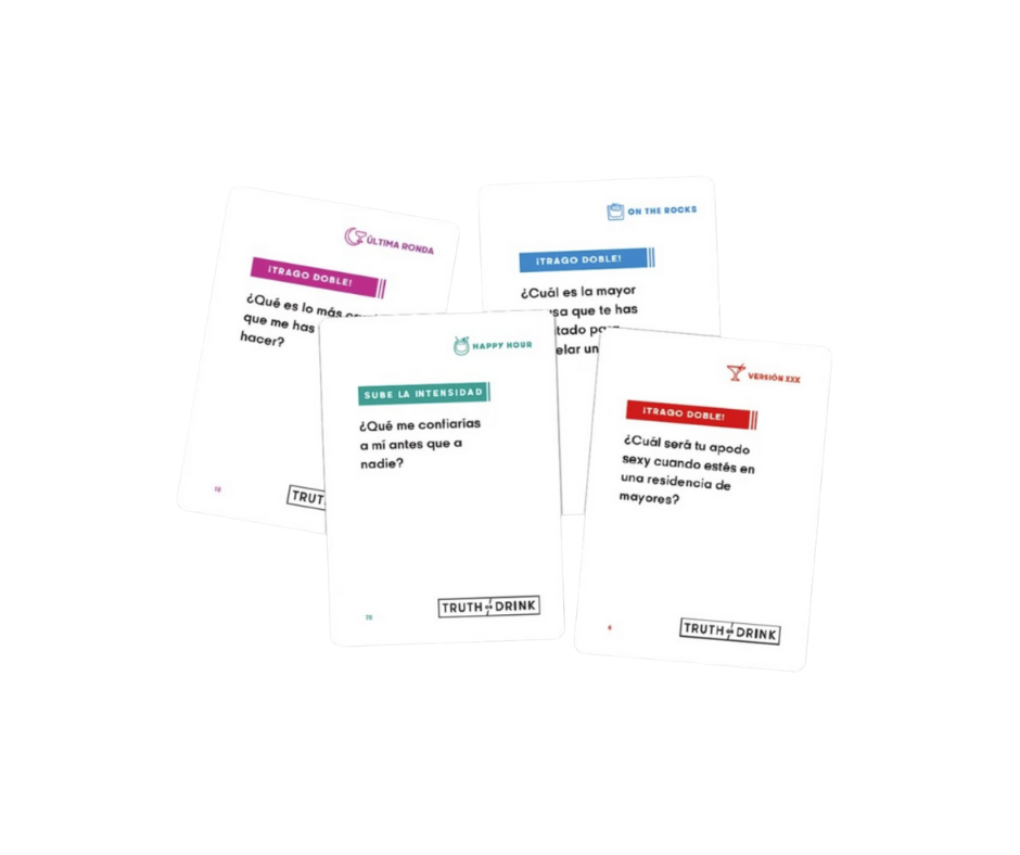 ¿La cruda verdad o un buen trago? Tú eliges. Truth or Drink es el juego de cartas definitivo para adultos que quieren llevar sus fiestas a otro nivel. Con 410 preguntas divididas en 4 niveles de intensidad, este juego te obligará a confesar tus secretos más oscuros o a empinar el codo para evitar la respuesta. Desde anécdotas ligeras en el “Happy Hour” hasta confesiones “Extra Dirty” que te harán sonrojar, es la herramienta perfecta para conocer a tus amigos de una forma que nunca imaginaste. ¡Prepárate, porque esta noche nadie se va a casa sin saber de más!